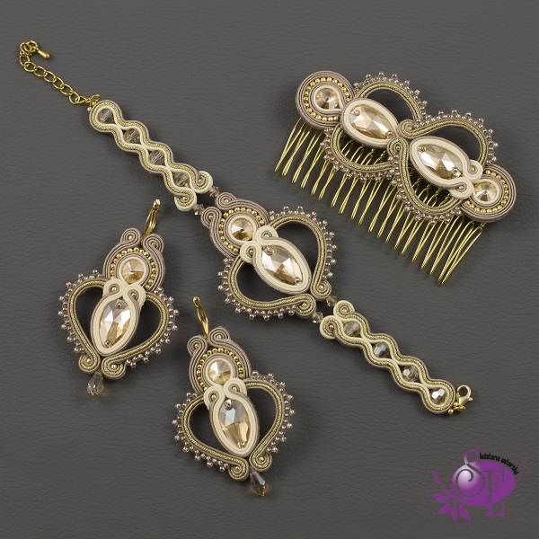 Niezwykle elegancki, bogato zdobiony, złoty komplet sutasz