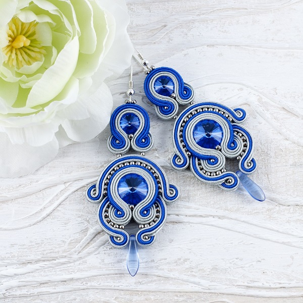 Długie kolczyki z szafirowymi kryształkami